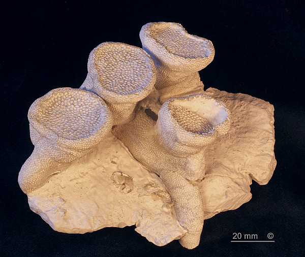 The finger-like protrusions have rounded terminations, except for those by which the sponge is attached to some substrate (e.g. the elongated basal protrusion visible in Figure 2).