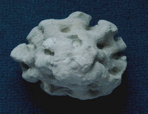 Becksia nidiformisLeonhard 1897Becksia nidiformis is a very rare species from Höver, and it is only known from the Lower Campanian. Side-view and top-view of a specimen of Becksia nidiformis. The species has a spherical habit and a central paragastral cavity. |