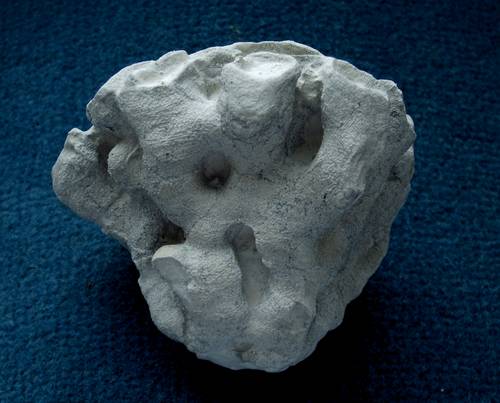 Becksia soekelandiSchlüter 1868Becksia soekelandi is a rare species from the Lower Campanian of Höver. A specimen of Becksia soekelandi collected in 2009 is shown here in top, bottom and side view. Since Becksia soekelandi is very thin walled and fragile, the sediment filling the paragaster, the tubes forming the wall and the cavaedial interspaces was not removed. The specimen is unusual, showing a wall consisting of two shells of anastomosing tubes, whose ends form a broad funnel rim. |