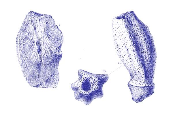 The picture to the left is taken from Griepenkerl (1889) and shows a more juvenile example of "Siphonia sexplicata". Notice that there is essentially no paragaster developed, but a central bundle of tubular canals instead, which exit in a shallow depression near the top. |
