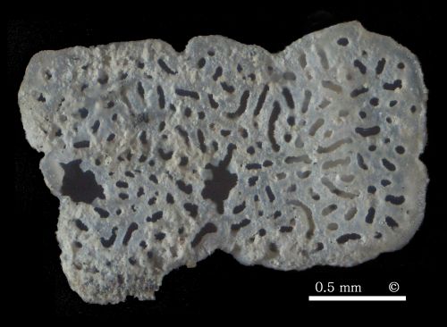 Photomicrograph of etched sample of Lepidospongia rugosa showing siliceous membrane covering the gastral surface.