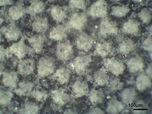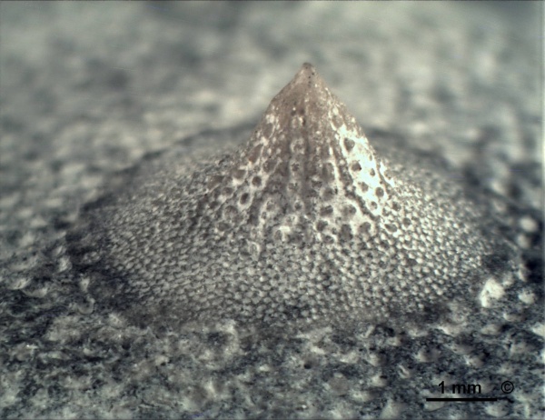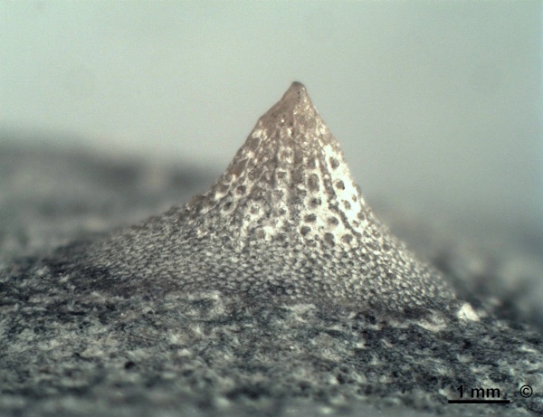 Figure 4 is a close-up view of the basal part of the sponge. The scleres show numerous cleavage planes (not well visible in the photograph).