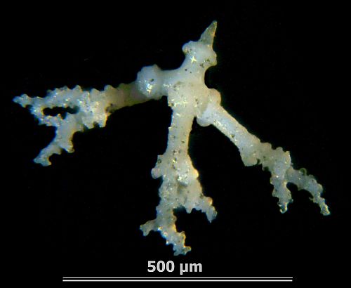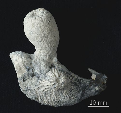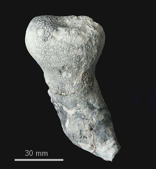 Solitary individuals often are j-shaped, as illustrated by the two images. Several specimens consistinmg of intergrown individuals, as well as cases of dichotomous and asymmetrical branching (budding ?) suggest that the species tends to occur in groups.