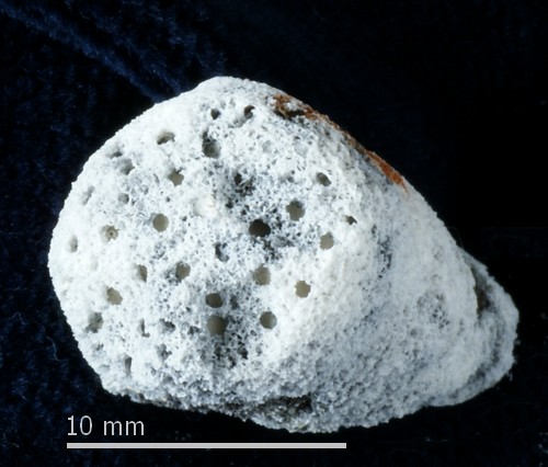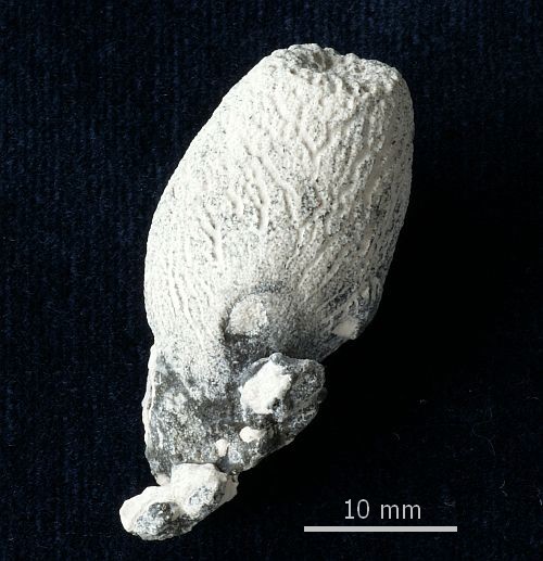 Longitudinal or oblique grooves are characteristic, but are not always well developed. The external surface shows many, randomly scattered, tiny ostia. Several, narrowly crowded postica corresponding to longitudinal tubular channels exit on the top of the sponge.